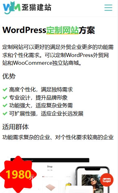 定制网站可以更好的满足外贸企业更多的功能需求和个性化需求。可以定制WordPress外贸网站和WooCommerce独立站商城。