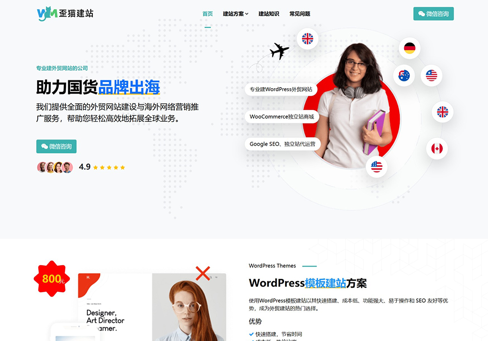 定制网站可以更好的满足外贸企业更多的功能需求和个性化需求。可以定制WordPress外贸网站和WooCommerce独立站商城。